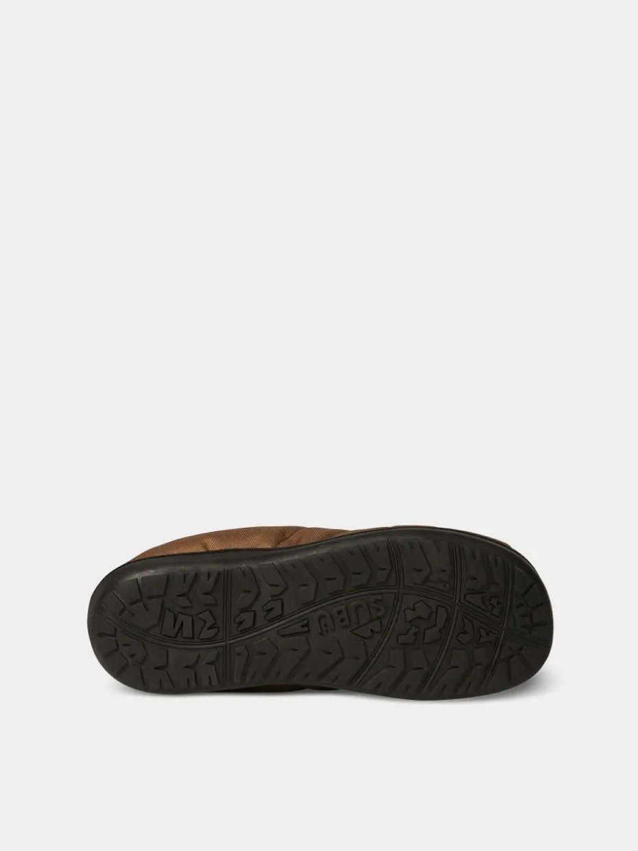 - Die Cordura® Slipper wurden aus recyceltem Cordura® Polyester in Zusammenarbeit mit der japanischen Schuhmarke Subu hergestellt. Sie sind mit einer 4-lagigen Einlegesohle gepolstert und mit einem gewebten Square Label verziert. Die Hausschuhe werden mit einer passenden Tragetasche geliefert.
