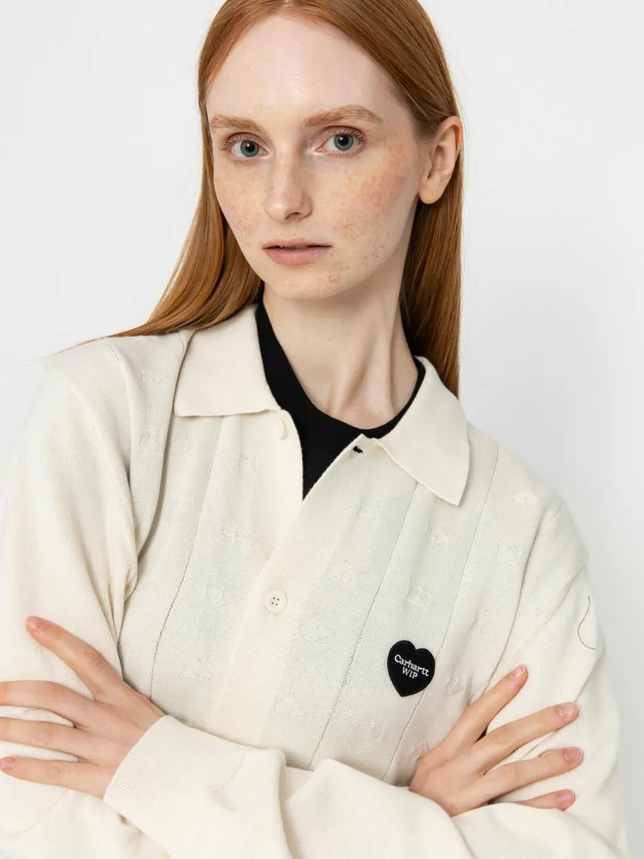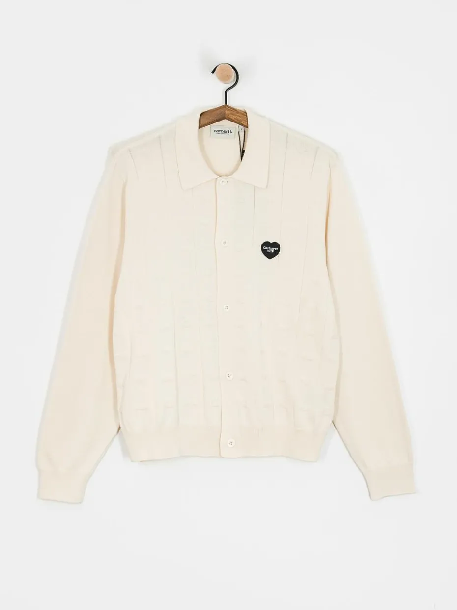 - Der Carhartt WIP Cardigan Drewe ist ein stilvoller Pullover aus Baumwolle in cremeweißem Farbton. Er hat lange Ärmel, einen Knopfverschluss vorne und einen klassischen Hemdkragen. Auf der Brust befindet sich ein herzförmiges Logo und die Vorderseite des Pullovers ist mit gestickten Herzen verziert. Bündchen, Saum und Kragen sind gerippt. Der locker sitzende Saum sorgt für Komfort und Bewegungsfreiheit.