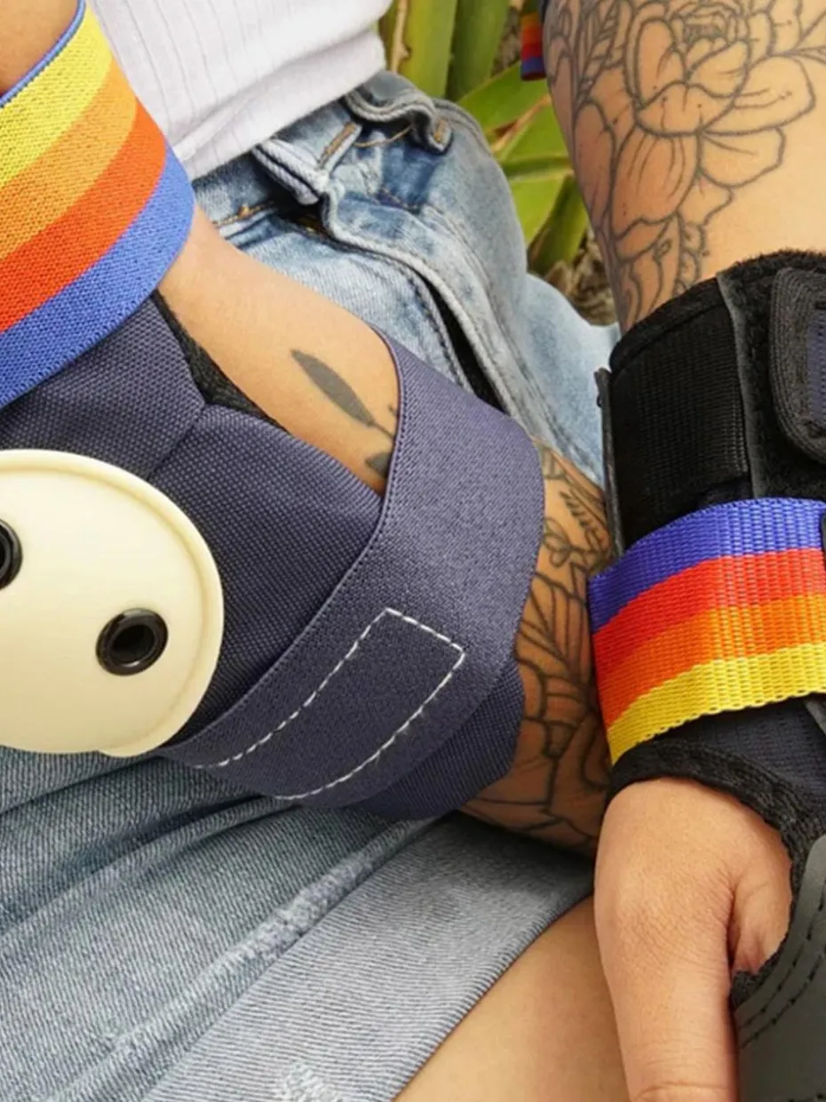 - Knie und Ellbogen: Leichter, stoßabsorbierender, belüfteter EVA-Schaumstoff sorgt für Luftzirkulation und reduziert Schwitzen. Ergonomisches Design für Komfort. Breite, verstärkte elastische Riemen für einen sicheren Sitz.