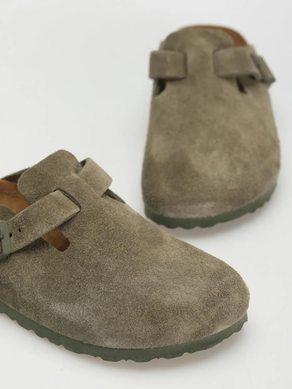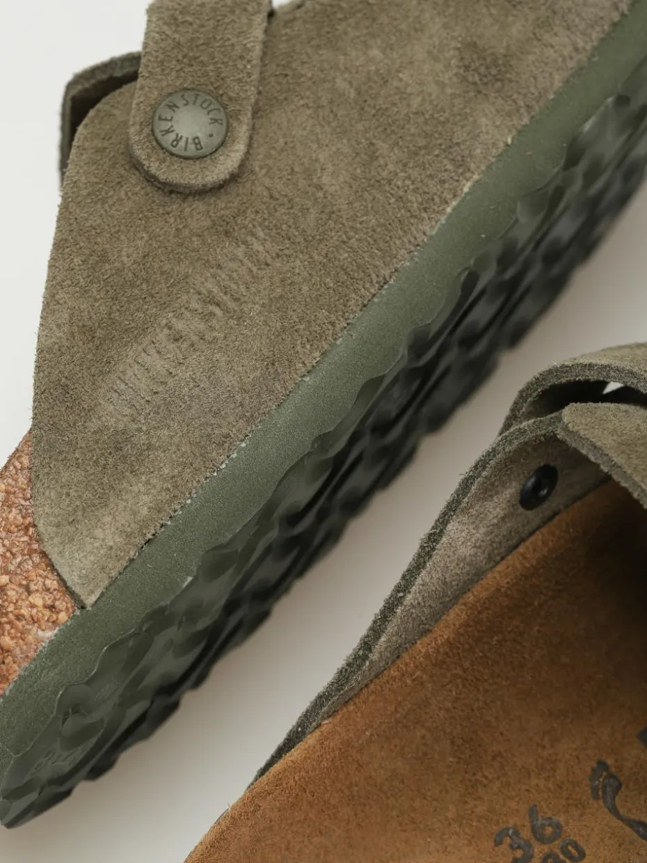 Genaue Information -Birkenstock Boston Suede Narrow Pantoletten Wmn – Grün (modern suede thyme)
