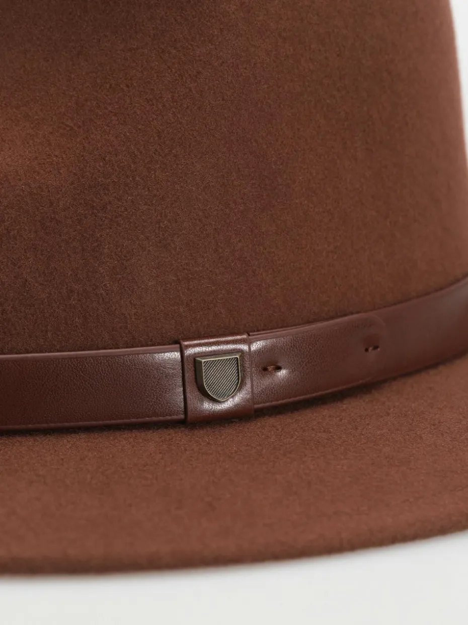 - Brixton Messer Fedora ist ein Filzhut mit Lederband und geprägtem Logo