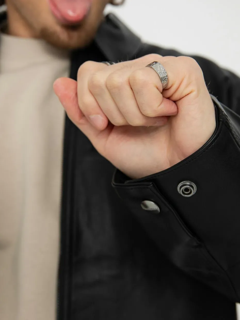 - Die Detroit-Jacke ist aus PU-Viskosematerial gefertigt und mit Nylon gefüttert. Die Jacke kann auch an den Manschetten und am Saum mit Druckknöpfen verstellt werdenós. Auf der Brust befindet sich ein tonales Square Label aus Kunstleder.