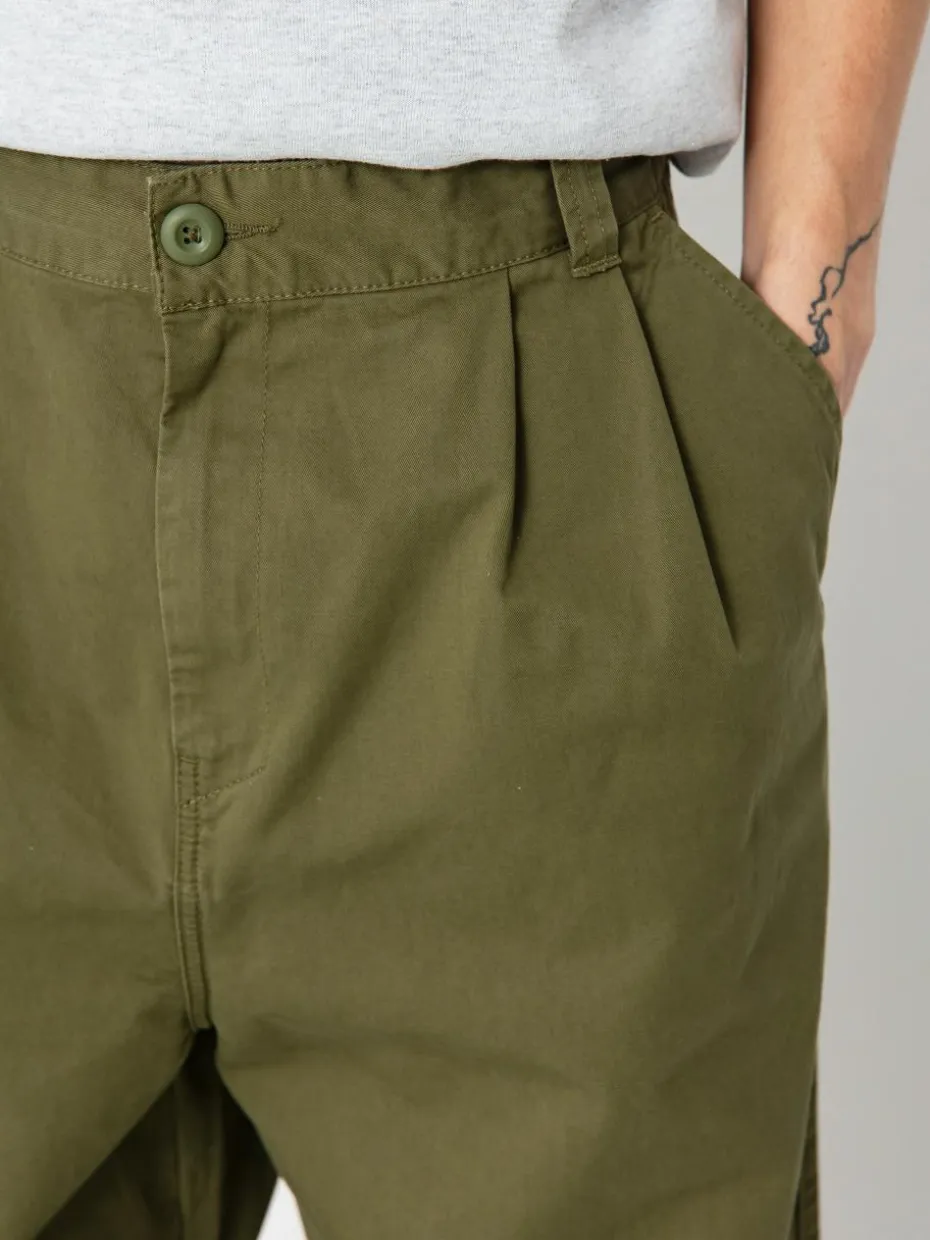 - Die Marv Pant ist aus mittelschwerem Baumwolltwill gefertigt, der für einen weicheren Griff gewaschen wurde. Sie hat einen lockeren, spitz zulaufenden Saum und eine reguläre Taille sowie kleine Falten auf der Vorderseite. Es hat auch rós zwei Seiten- und Gesäßtaschen und ein gewebtes Square Label.