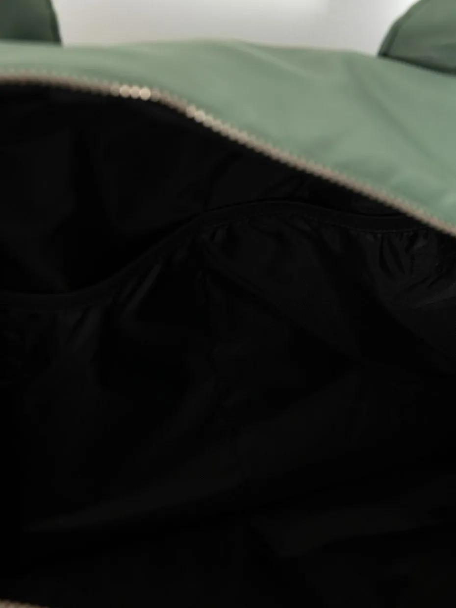 - Innen: eine Tasche mit hängendem Reißverschluss, eine Tasche mit Klettverschluss