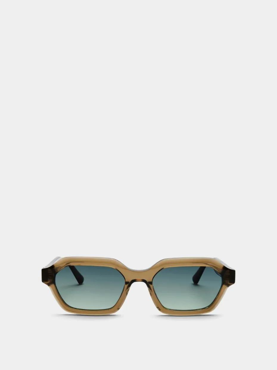 - Sonnenbrille mit einzigartiger sechseckiger Form und scharfen Kanten. Handgefertigter Acetat-Rahmen, 5-Gelenk-Goldscharniere und goldenes Finish an den Bügeln. 100% UVA+UVB-Schutz.
