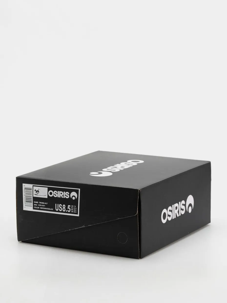 - Das Modell Osiris Troma Alt kombiniert den klassischen, vom Court inspirierten, sportlichen Stil mit dem charakteristischen Design von Osiris. Hergestellt aus weißem Kunstleder mit schwarzen und weißen Details, bieten sie Haltbarkeit, Komfort und eine moderne Passform.