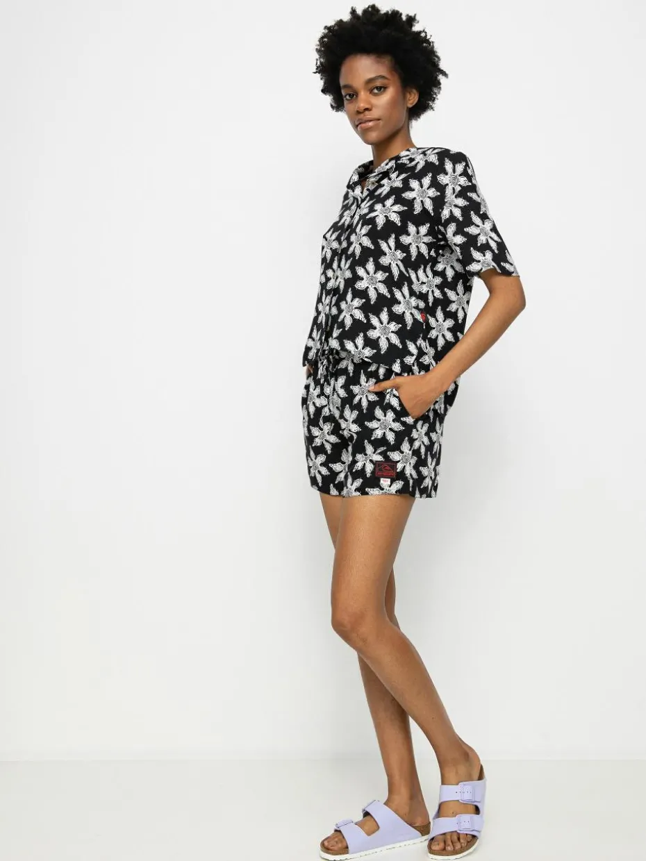 Genaue Information -Quiksilver X Stranger Things Upside Down Hemd Wmn – Schwarz (upsidown monster flower black)